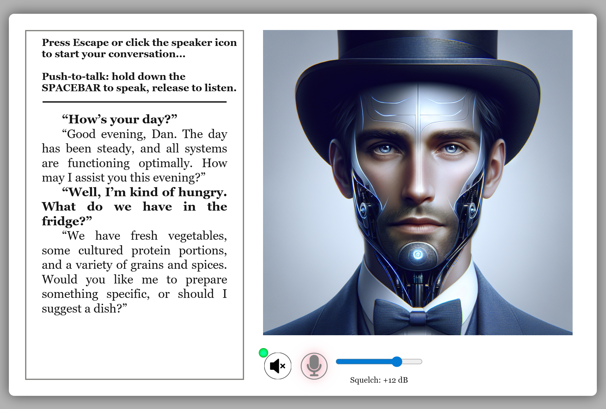 Click a character image, then press Escape to activate the audio interface. Then hold the Spacebar to speak. Release to listen. Use tone, emphasis, and pauses to guide the interaction. When you're done, click the character image again to return to the story screen.